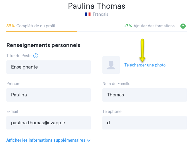 Dans la section de vos renseignements personnels, vous verrez l'option de télécharger une photo. Voir la capture d'écran ci-dessous.